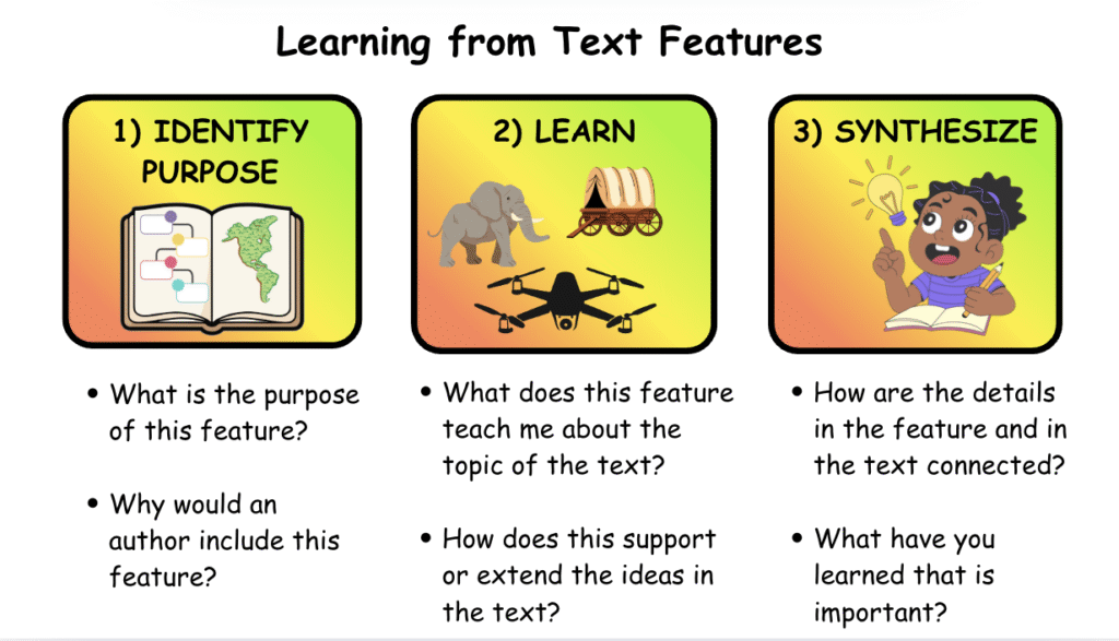 Do your students gloss over features like graphs, photographs & captions in informational sources with hardly a thought? Or do they stop to think about what they can learn from a particular feature and how it connects to other ideas in the source? Our instruction really needs to focus on the latter – really understanding the content of a feature and then connecting that content to other ideas in the source.